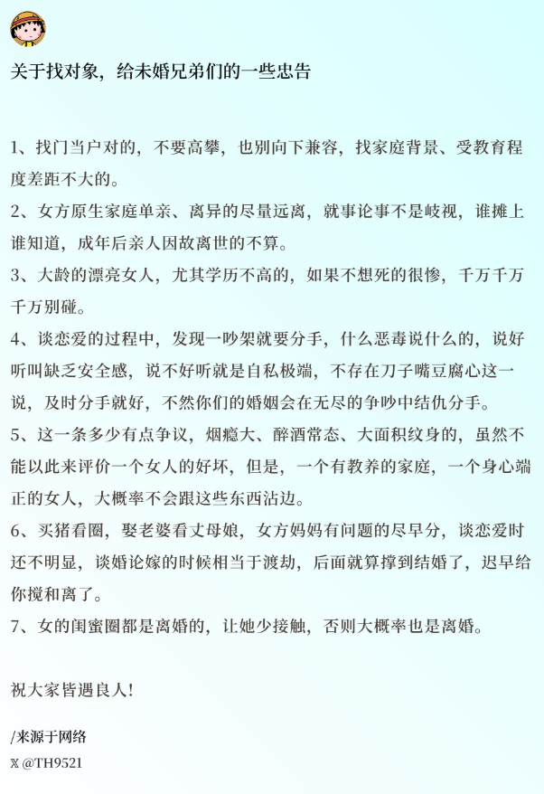 关于找结婚对象,给未婚兄弟们的一些忠告