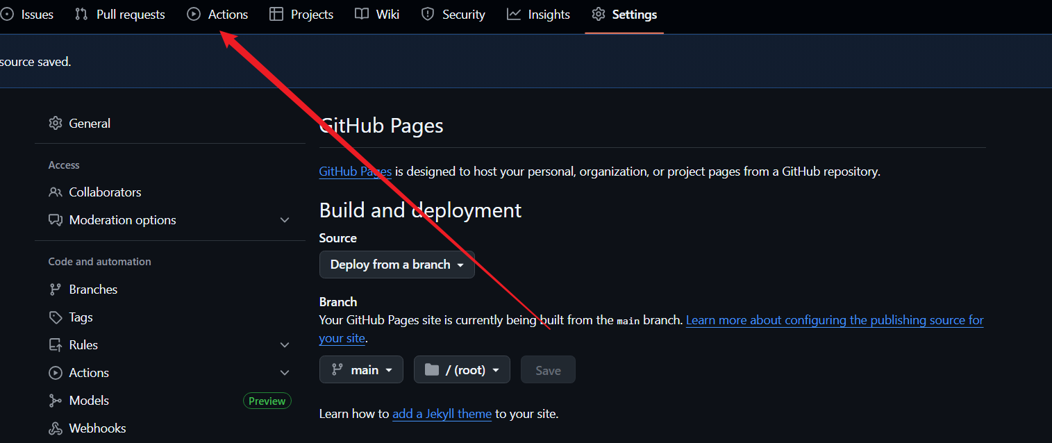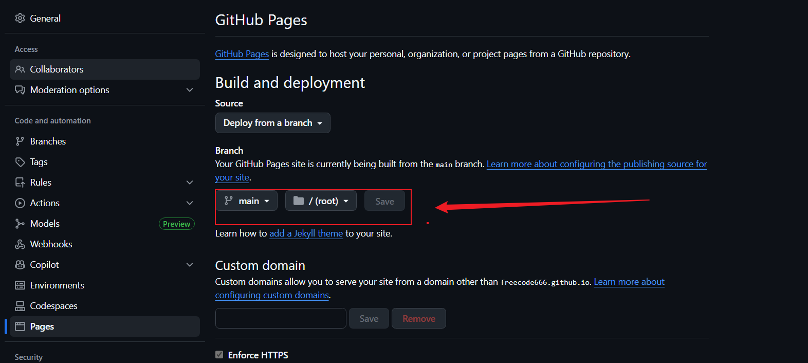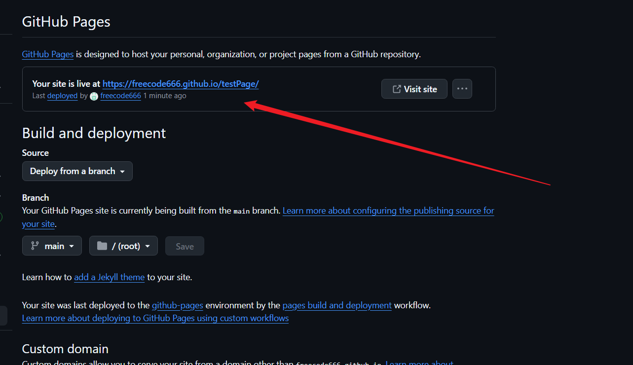 分支选择main 目录选择 /。等了一会发现没有链接,注意
