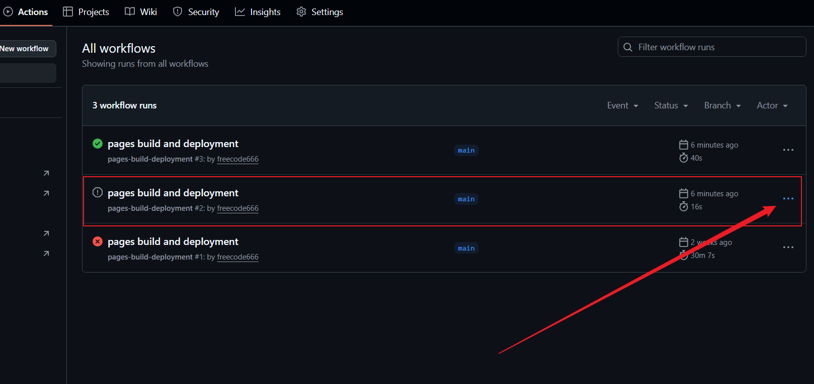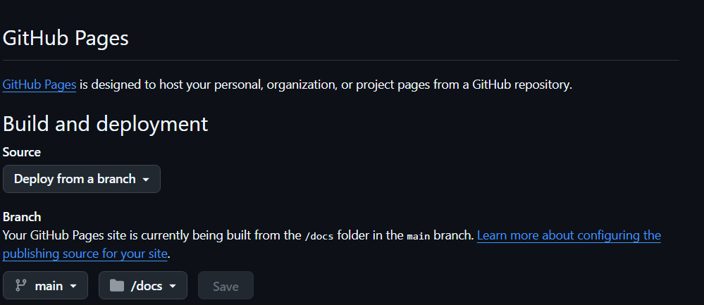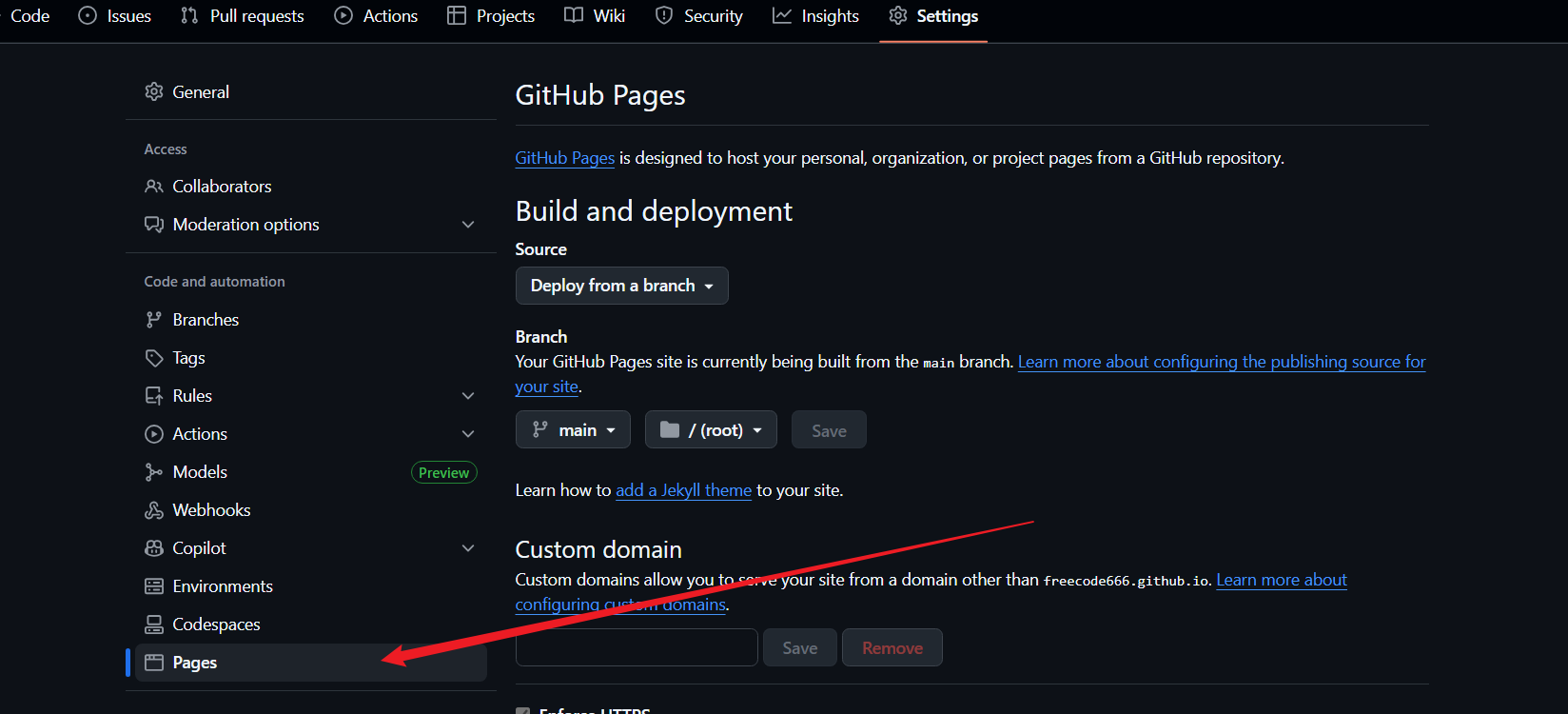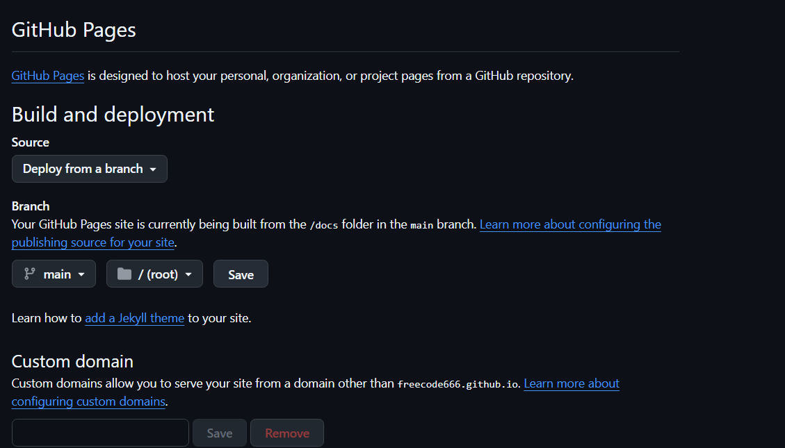 分支选择main 目录选择 /。等了一会发现没有链接,注意