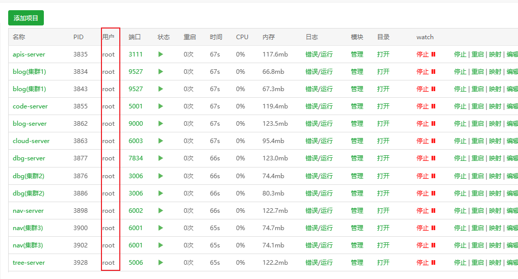 pm2 start|restart|stop|delete appname :开启、重启、停止、删除应用