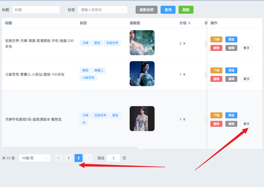 我本来点击的是第二页的第三行数据置顶,结果置顶的是第一页的第三行数据